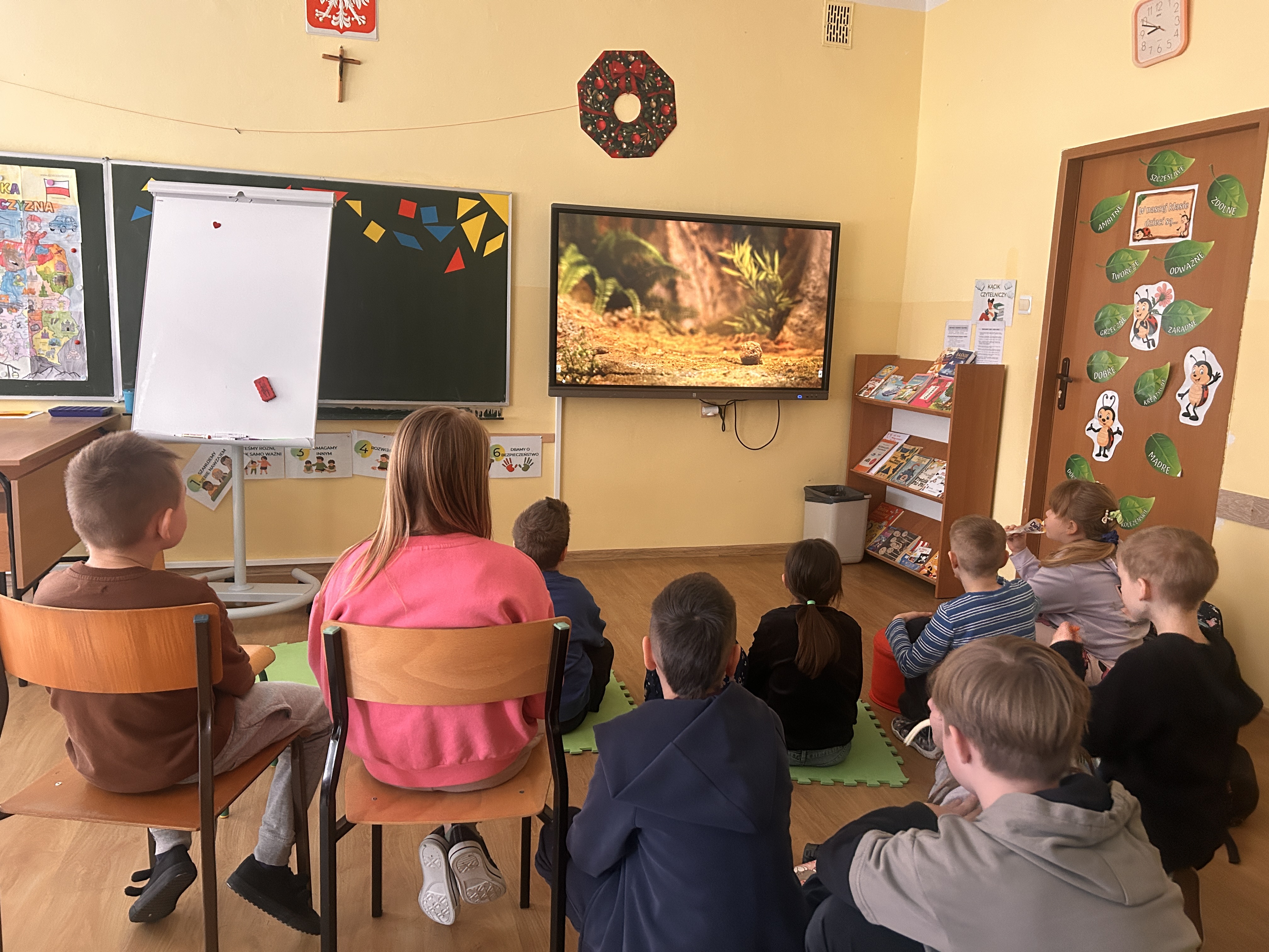 Uczniowie klas młodszych wzięli udział w akcji „Turlając kulkę pod górkę”, organizowanej przez Polska Akcja Humanitarna. Podczas zajęć obejrzeli animację „Żuczki”, która stała się punktem wyjścia do rozmowy o tym, czym jest przywilej i jak wpływa na nasze życie. Dzieci miały okazję zastanowić się, dlaczego nie wszyscy mają takie same możliwości oraz jak ważne jest okazywanie zrozumienia innym. Była to cenna lekcja budująca wrażliwość i świadomość społeczną najmłodszych.